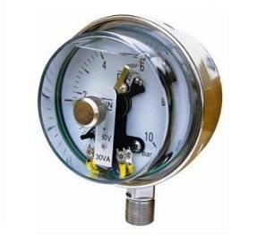 壓力表配合電接點裝置,當(dāng)壓力變化時,經(jīng)由指針位置的上下移動,進(jìn)而帶動電磁接點的開或關(guān),來控制馬達(dá)或電磁閥等訊號的動作。