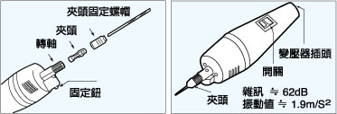 ‧ 精巧外觀設(shè)計,握感最佳 ‧ ABS塑膠本體,重量最輕 (136g) ‧ 快速更換夾頭裝置,無需任何工具 ‧ 適合鉆孔、打磨、拋光、切割等工作