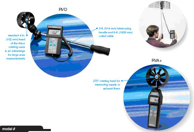 旋轉(zhuǎn)葉片風(fēng)速計(jì)可測(cè)量真實(shí)空氣速度,讀物無(wú)需進(jìn)行密度校正因子修正。 RVA+ 的用戶可通過(guò)按單側(cè)按鈕并對(duì)被測(cè)量區(qū)域進(jìn)行“掃描”而獲得面積平均流量。 RVD 提供了伸長(zhǎng)測(cè)量以及數(shù)據(jù)記錄、調(diào)用和下載功能。