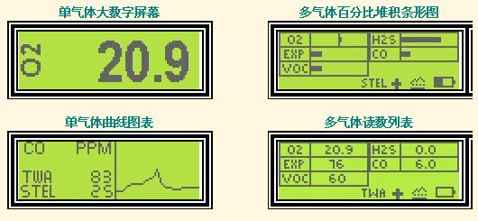 ★ 5種氣體讀數(shù)全部同時(shí)用百分比堆積條形圖或數(shù)字顯示有助于現(xiàn)場(chǎng)的即時(shí)評(píng)估;